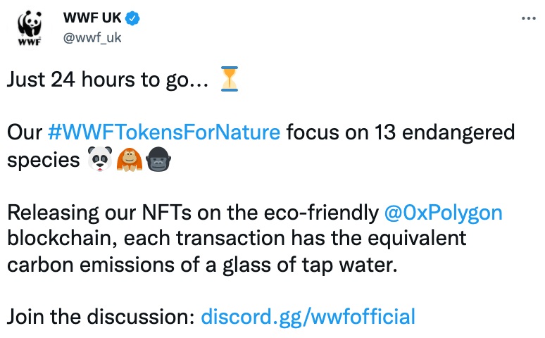 Who had non-fungible animals on their 2022 bingo card? That's right... the World Wildlife Fund UK is selling NFTs to raise money for their efforts in protecting 13 endangered species around the world. While it might sound like a good idea, the inherent contradiction between trying to save endangered animals with a fundraiser that has been criticized for its poor environmental impact is a bit puzzling to say the least. The WWF is building the NFTs on Polygon, a side-chain of Ethereum that is more environmentally friendly. However, critics have quickly pointed out that anything using the Ethereum blockchain is a highly energy intensive process. While WWF UK brought sales to a close early, and have said they are committed to learning more about the process and making informed decisions in the future, WWF Germany's fundraiser is still going strong and has raised over €247,000.