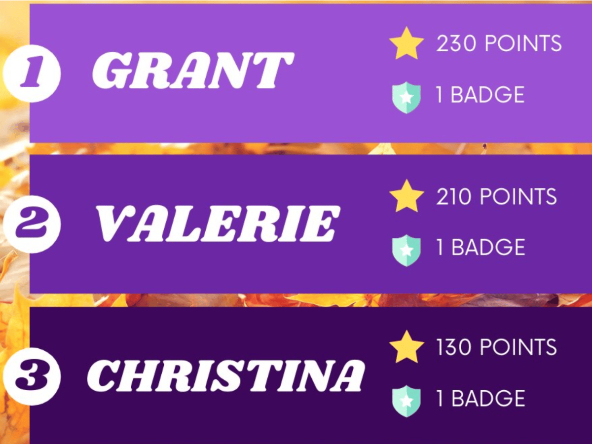 Last month Grant took home our top spot with Valerie and Christina grabbing a silver and gold medal respectively. Enjoy the hardware because October is here and we crown a new monthly learning leader in 28 days. Some new courses are dropping in a couple weeks so get a head start today!