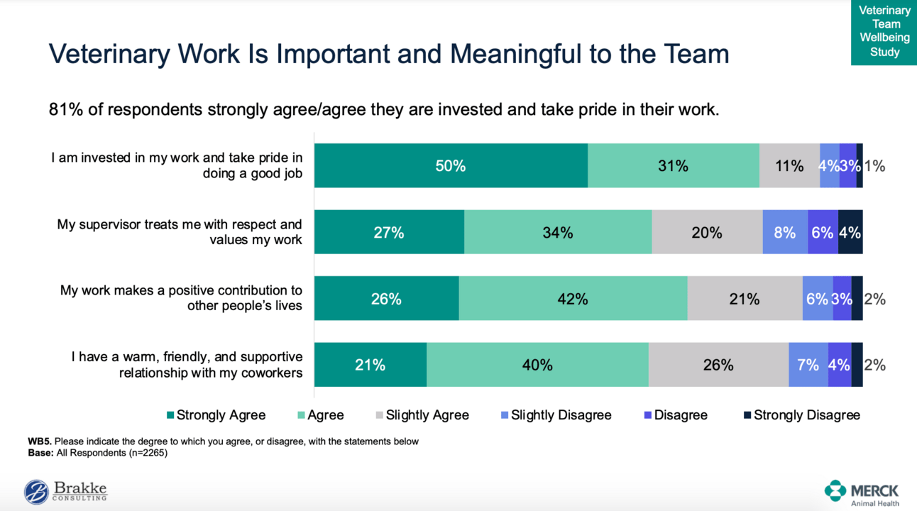 Meaningful Work: A majority (81%) of veterinary team members find their work meaningful and important.